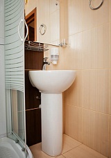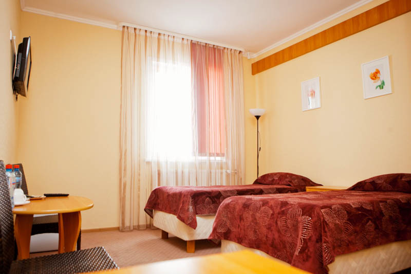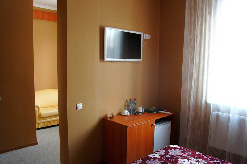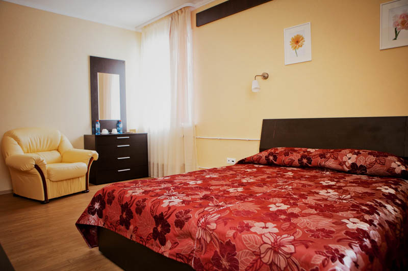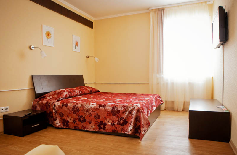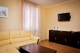 Уютные двухкомнатные номера площадью 21 кв.м, в пастельных тонах, с напольным ковровым покрытием. В каждом номере: 2-спальная кровать, кожаный диван, 2 прикроватные тумбы, светильники, журнальный столик, стул, вешалка с зеркалом, плазменный телевизор с USB-разъемом, мини-бар, чайник, индивидуальный сейф, также отдельный санузел (индивидуальный комплект полотенец для каждого гостя, фен, душевая кабина, раковина, унитаз). -