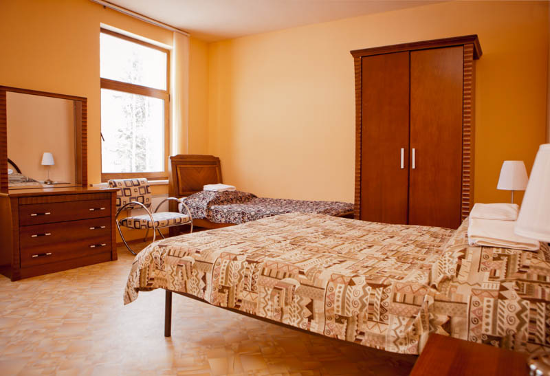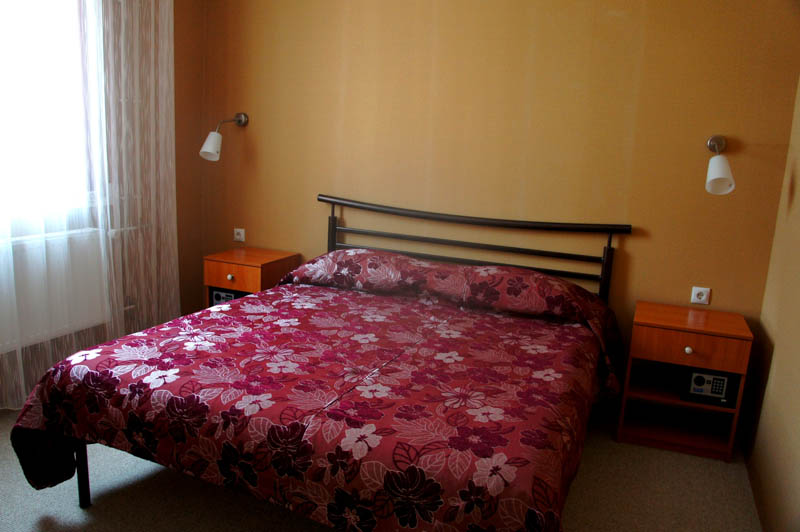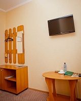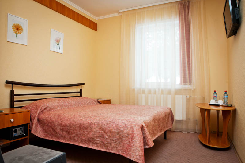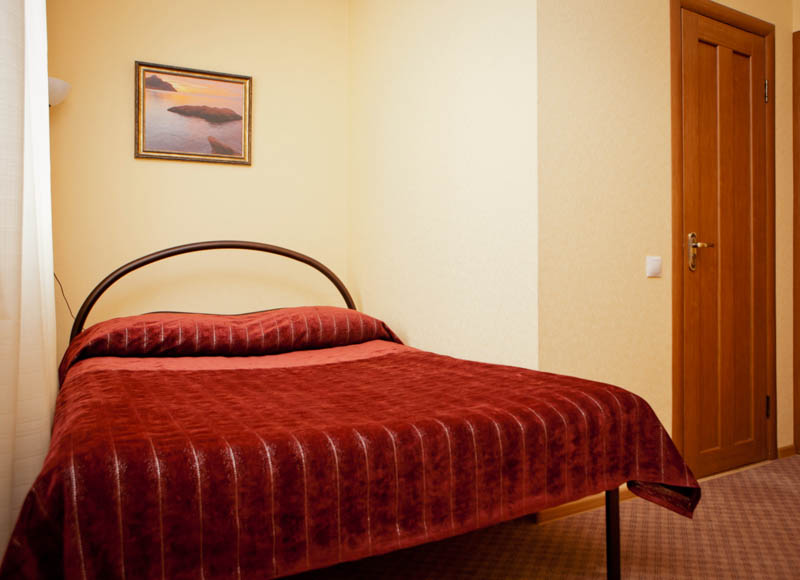 Небольшие уютные номера площадью 12 кв. м, оформлены в пастельных тонах, с напольным ковровым покрытием. В каждом номере: 1,5-спальная кровать, прикроватная тумба, светильник, журнальный столик, стул, вешалка с зеркалом, плазменный телевизор с USB-разъемом, мини-бар, индивидуальный сейф, также отдельный санузел (индивидуальный комплект полотенец для каждого гостя, фен, душевая кабина, раковина, унитаз).