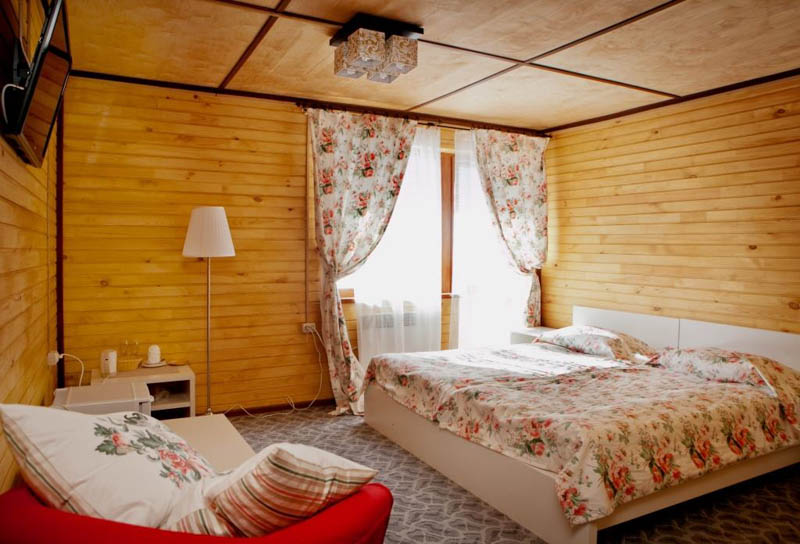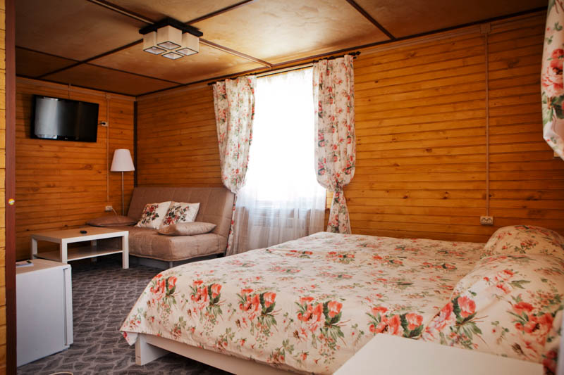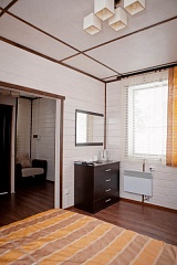 Отдельно стоящий домик площадью 16 кв. м, выполненный из натурального дерева. К вашим услугам большая двуспальная кровать, 2 раскладных кресла-кровати, прикроватные светильники, журнальный столик, комод с зеркалом, вешалка, 2 плазменных телевизора с USB-разъемом, также отдельный санузел, где есть индивидуальный комплект полотенец для каждого гостя, фен, душевая кабина, раковина, унитаз. -