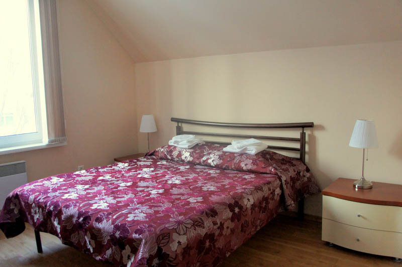На втором этаже коттеджа одна большая спальная комната на 4 человек (2 односпальные кровати и 1 большая двуспальная кровать), и две спальни для семейного размещения (в каждой комнате большая двуспальная кровать). При необходимости можно устроить дополнительные спальные места. Каждому гостю предоставляется индивидуальный комплект полотенец.