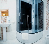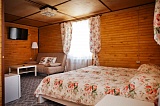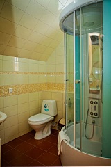 Большой шикарный номер площадью 24 кв. м в отдельностоящем корпусе. В номере большая 2-спальная кровать, мягкий диван или кресла, 2 прикроватные тумбы, прикроватные светильники, журнальный столик, вешалка с зеркалом, большой плазменный телевизор с USB-разъемом, мини-бар, чайник также санузел с большой душевой кабиной, раковиной, унитазом, индивидуальным комплектом полотенец, в санузле теплые полы. -