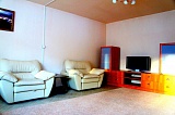 Большой двухкомнатный номер, площадью 40 кв. м оформлен в пастельных тонах. Из окон гостиной комнаты открывается живописный вид на байкальский горнолыжный курорт «Гора Соболиная». К вашим услугам кожаный диван, светильники, тумба, комод, стулья, плазменный телевизор с USB-разъемом. Все это вместе создает атмосферу уюта и комфорта. -