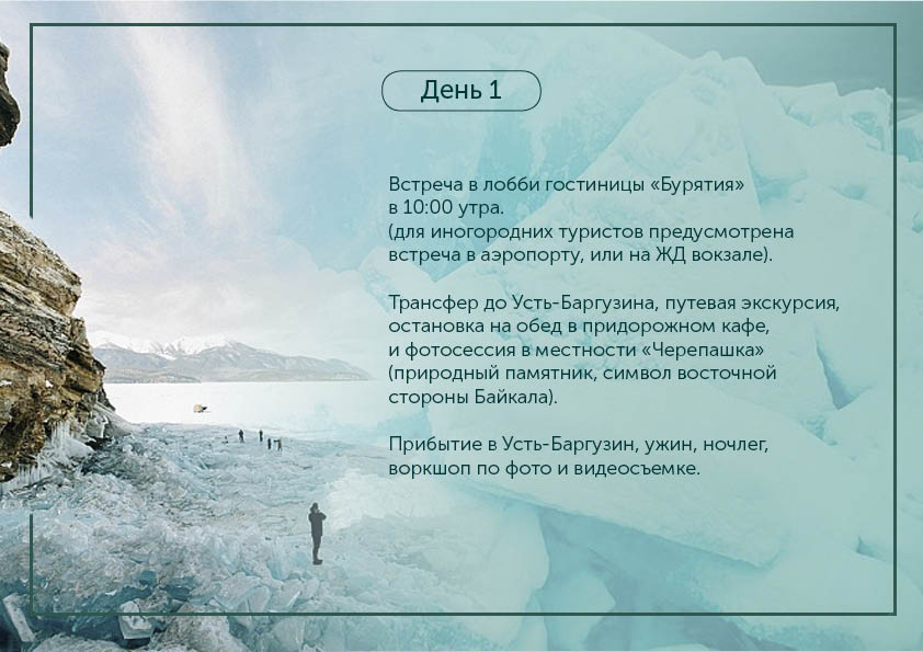 Встреча в лобби гостиница "Бурятия" в 10:00 утра, для иногородних туристов предусмотрена встреча в аэропорту, или на ЖД вокзале.