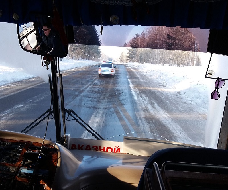 Все формальности завершены, экипаж сопровождения ГИБДД прибыл, отправляемся в путь.